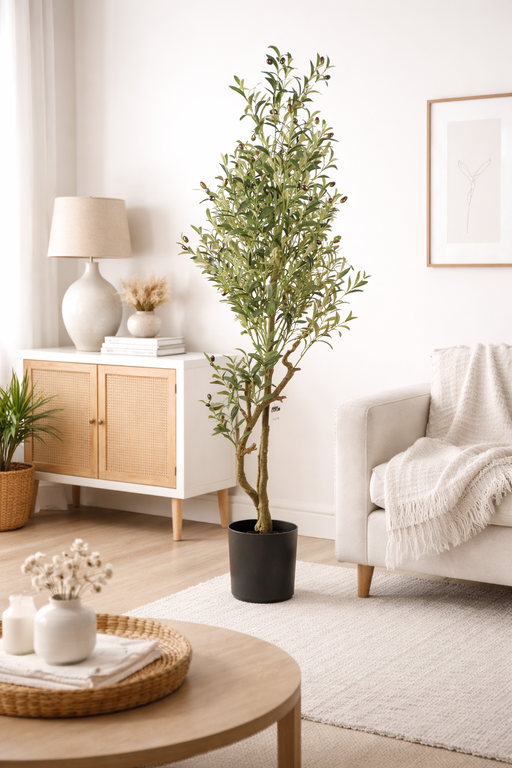 Bring the warmth and understated style of the Mediterranean to your home with this Artificial Olive Tree. With a realistic trunk, soft-touch fabric...