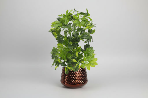 View full detailsA handcrafted metal planter designed to add warmth and texture to your plant displays. Featuring an elegant gold honeycomb pattern, this planter c...