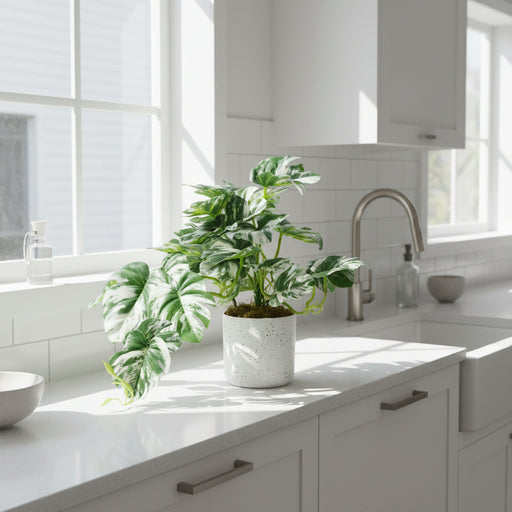 Discover realistic artificial Monstera plants with iconic split leaves and bold tropical character. Perfect for adding statement greenery to modern interiors without maintenance.