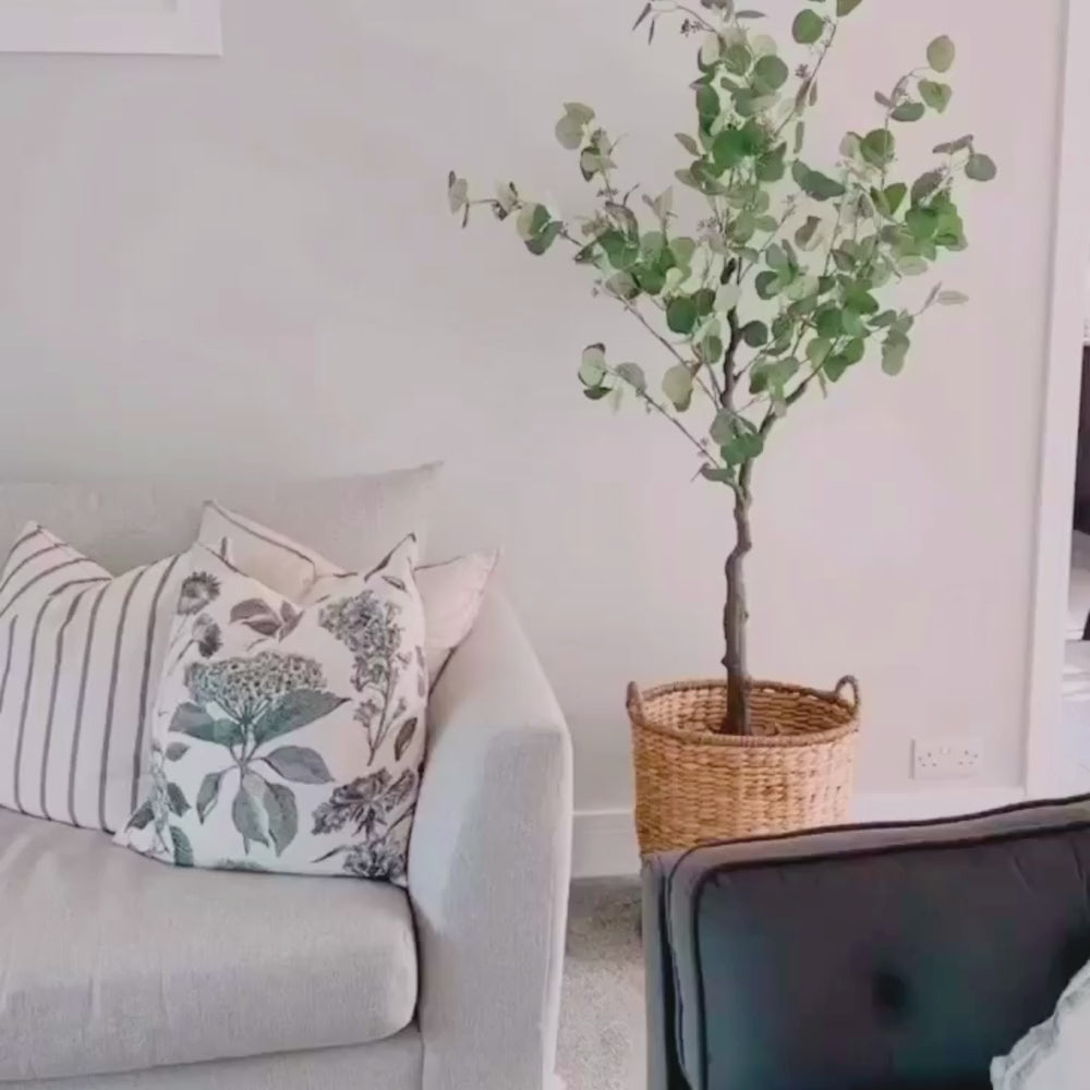 Jump on the eucalyptus trend with this beautiful Artificial Eucalyptus Tree. This tree is the perfect addition to any space but ideal for offices, bedrooms, and hallways. The silk leaves perfectly capture that much-loved green-blue and silvery colour of real eucalyptus leaves, and the airy, elegant foliage tops a delicate yet robust trunk. Bring the relaxing nature of eucalyptus into your home without the intense smell or stress of dealing with fast growth – real eucalyptus can grow up to 8 feet in one season!