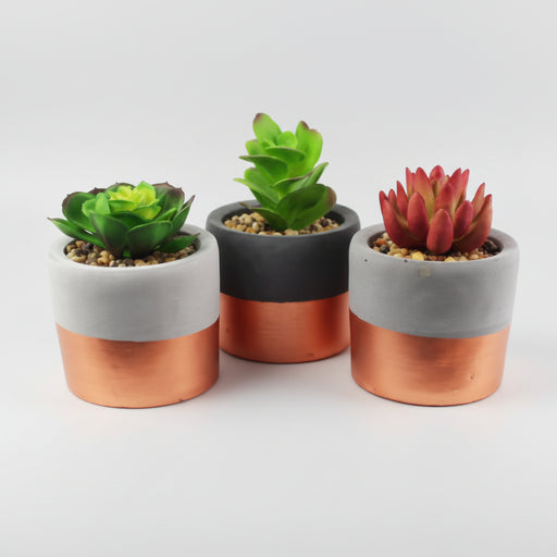 Original price £25.00 - Original price £25.00Original price£25.00£25.00 - £25.00Current price £25.00| /A stylish trio of artificial succulents presented in contemporary stoneware planters with copper band detailing — perfect for adding instant greene...