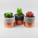 A stylish trio of artificial succulents presented in contemporary stoneware planters with copper band detailing — perfect for adding instant greenery to smaller spaces.