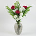 These artificial flower arrangements come with the vases a complete pack of everything you need to create the display shown in our photos. When arranged as we have it shown in our photos this measures 85cm x 55cm x 55cm. Stems are wired and this can be shaped to your requirements. This pack contains the following 1 x 35cm smoke grey bubble vase 35cm x 22cm x 22cm at widest points. the narrower top rim measures 8cm diameter. 3 x 80cm artificial dark pink peony stem. 4 x WHITE 70cm white artificial carnation stem with four silk flowers. 3 x 85cm bamboo fern stem. Flowers and foliage are supplied loose at full length ready for you arrange. You can cut these shorter if wanted for arrangement (very easy- just use wire cutters) or you can just fold the stems at the ends before putting them in the vase