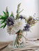 • Includes blue dahlias, white dahlias, eucalyptus, and foliage