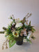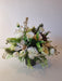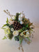 Grave Pot Memorial Arrangement – White Artificial Flowers with Pinecon